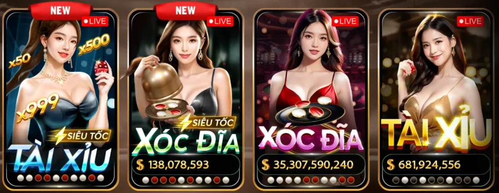 Trong sảnh live casino, game thủ có thể trải nghiệm những thể loại đỉnh cao như Baccarat, Roulette, Sicbo, Dragon Tiger, Blackjack cho đến Fantan. Mỗi thể loại sở hữu cách chơi và tỷ lệ thưởng riêng biệt, nhưng điểm chung đều mang đến sự đẳng cấp và chuyên nghiệp.